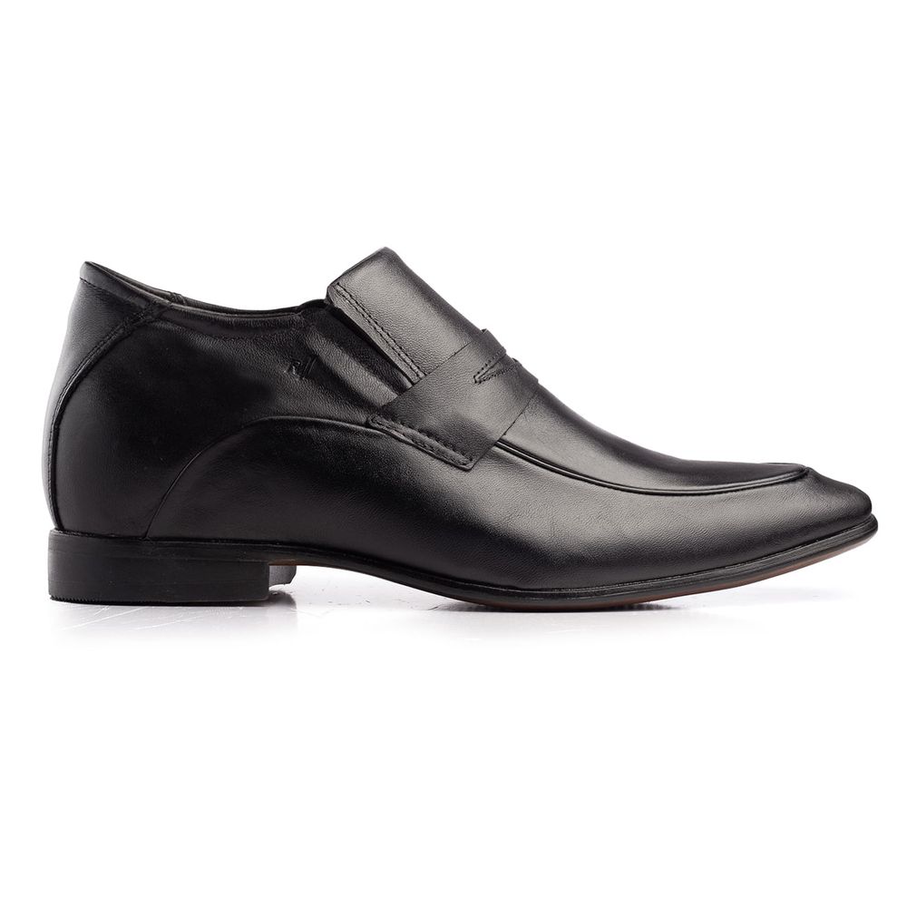A linha Alth da Rafarillo traz o sapato masculino com salto embutido. Confeccionado com interior em PU, material antitranspirante e solado de borracha, este sapato masculino oferece mais conforto e segurança ao caminhar com seu sapato de couro. Perfeito para homens de baixa estatura. Sua calcanheira elevada em PU derramado somado ao salto externo do sapato, atinge até 7 cm de altura. Este sapato masculino com salto interno, além de ser totalmente em couro, possui abertura lateral com elástico, facilitando o calce.